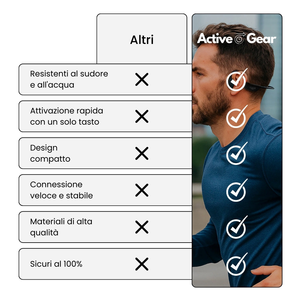 I nostri auricolari sportivi sono progettati per rimanere sempre saldi e comodi, anche nei movimenti più intensi.